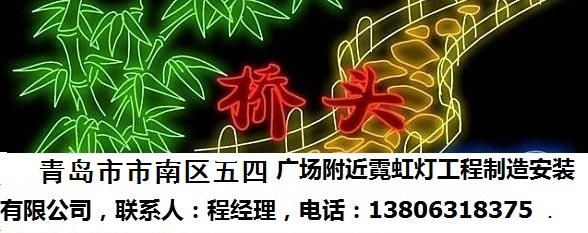 青島市市南區(qū)五四廣場(chǎng)附近霓虹燈照明工程制造安裝維修有限公司,聯(lián)系人:程經(jīng)理,.,專(zhuān)業(yè)制作安裝維修霓虹燈和相關(guān)戶(hù)外照明工程,價(jià)格:750元/平方米,保修一年,終身維護(hù),(誠(chéng)征全國(guó)代理商),專(zhuān)業(yè)從事商業(yè)門(mén)面,招牌、街道景觀(guān)的整體設(shè)計(jì)。設(shè)計(jì)制作安裝噴繪廣告牌,燈箱,LED燈飾,霓虹燈,電子顯示屏,單立柱,樓體光亮工程等等,是戶(hù)外視頻專(zhuān)業(yè)制作安裝公司。 青島市市南區(qū)五四廣場(chǎng)附近霓虹燈照明工程制造安裝維修有限公司在威海市區(qū),文登區(qū),榮成市,乳山市及煙臺(tái)芝罘、福山、牟平、萊山4個(gè)區(qū)及長(zhǎng)島縣,龍口、萊陽(yáng)、萊州、蓬萊、招遠(yuǎn)、棲霞、海陽(yáng),,青島,濰坊,淄博,德洲, 東營(yíng),濟(jì)南,天津,北京, 大連, 沈陽(yáng), 上海,.蘇州, 無(wú)錫市,臨沂,本溪,衡水,長(zhǎng)春,哈爾濱,太原,徐州,合肥,鄭州,武漢,杭州,南昌,長(zhǎng)沙,泉州,廣州,西安,成都,蘭州,貴陽(yáng),昆明,呼和浩特,重慶,日照,丹東,石家莊,吉林,齊齊哈爾,大同,常州,蕪湖,開(kāi)封,黃石,寧波,贛州,常德,廈門(mén),深圳,咸陽(yáng),自貢,天水,六盤(pán)水, 曲靖, 包頭,桂林,銀川,烏魯木齊,拉薩,泰安, 葫蘆島,唐山,四平, 佳木斯,陽(yáng)泉,南通, 蚌埠,安陽(yáng), 襄樊,溫州,九江,郴州,三明, 珠海,商洛,攀枝花, 白銀,遵義, 玉溪, 烏海,,石嘴山,克拉瑪依市,昌都地區(qū)等地制作安裝了大量?jī)?yōu)質(zhì)的戶(hù)外照明廣告牌,獲得客戶(hù)們的贊譽(yù)和褒獎(jiǎng)。我公司注重將嶄新的照明科技產(chǎn)品運(yùn)用到工程當(dāng)中,設(shè)計(jì)突出客戶(hù)行業(yè)特點(diǎn),起到很好的宣傳效果,突出了客戶(hù)正面形象,為客戶(hù)們帶來(lái)良好的廣告效果和經(jīng)濟(jì)效益。霓虹燈是戶(hù)外廣告的主要形式之一,為企業(yè)和單位主體建筑在夜幕中增加色彩和動(dòng)感,展現(xiàn)公司企業(yè)積極向上開(kāi)拓進(jìn)取的精神風(fēng)貌,時(shí)代感強(qiáng)烈。同時(shí)為所在街道的夜晚增加靚麗的風(fēng)景,特別是重大節(jié)慶日的夜晚,更能體現(xiàn)會(huì)說(shuō)話(huà),有感情的建筑。裝飾霓虹燈時(shí),設(shè)計(jì)安裝的畫(huà)面體現(xiàn)公司,單位性質(zhì)可以很好的提升企業(yè)形象,為客戶(hù)留下深刻的印象,為擴(kuò)大業(yè)務(wù)打下良好的基礎(chǔ)。, 霓虹燈一般分兩大類(lèi): 1、靜態(tài)燈,顏色固定,各部分不變化; 2、動(dòng)態(tài)燈,廣告文字和圖案一閃一息,不斷變換輪廓和顏色。動(dòng)態(tài)霓虹燈廣告比靜態(tài)霓虹燈廣告美觀(guān)新奇,更為引人注目,而且耗電量少。 , 霓虹燈廣告的主要優(yōu)點(diǎn)包括:簡(jiǎn)單明了,可重復(fù)出現(xiàn),引人注目,且光亮艷麗,宣傳效果較好,有利于突出企業(yè)的名稱(chēng)、廠(chǎng)牌和商標(biāo)。, 青島市市南區(qū)五四廣場(chǎng)附近霓虹燈工程安裝維修有限公司設(shè)計(jì)生產(chǎn)安裝的霓虹燈工程質(zhì)量穩(wěn)定,設(shè)計(jì)新穎貼切,按時(shí)交工,工程圖案干凈明快,結(jié)合白天和夜晚的效果,給客戶(hù)最美的感覺(jué)。,,,,,,,,,,,,,,,,,,,,,, ,,,,,,,,,,,,