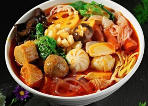 麻辣燙是一種起源于四川樂山牛華鎮(zhèn)的傳統(tǒng)特色小吃,經(jīng)過(guò)東北做法改良之后流行于各地的漢族特色小吃。它有麻辣、咸的口味,是川渝地區(qū)最有特色也最能代表“川味”的一種飲食。國(guó)家質(zhì)檢總局、國(guó)家標(biāo)準(zhǔn)委聯(lián)合發(fā)布《公共服務(wù)領(lǐng)域英文譯寫規(guī)范》系列國(guó)家標(biāo)準(zhǔn),麻辣燙的名詞標(biāo)準(zhǔn)翻譯為Spicy Hot Pot,于2017年12月1日起正式實(shí)施。 麻辣燙的主要食材包括魚、肉、豆制品、酸菜、素食材等,底湯配料有撒尿牛肉丸、麻辣燙面條、白菜、海帶等。 麻辣燙的制作方法是將各種食材放入鍋中煮熟,煮熟后放入碗中,加入底湯配料和調(diào)料即可食用。麻辣燙的口味和味道可以根據(jù)個(gè)人喜好和地區(qū)口味進(jìn)行調(diào)整,有的地方口味較辣,有的地方口味較咸。