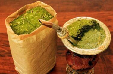 馬黛茶(西班牙語(yǔ)caiguá)是一種產(chǎn)自阿根廷的代用茶、木本植物茶,是采用馬黛樹(學(xué)名巴拉圭冬青)的葉子制成的一種飲品,主要流行于巴拉圭、阿根廷、巴西等國(guó)家和地區(qū),其茶呈煙熏且夾帶植物草的香氣,滋味濃厚,并呈現(xiàn)一定苦味,同時(shí)有強(qiáng)烈的回甘。 別稱耶穌會(huì)茶、巴拉圭來(lái)的茶、傳教士的茶。 飲用馬黛茶時(shí)需要用到專門的茶具和吸管。容器是用一種葫蘆科植物的果實(shí)做成的,吸管是一個(gè)帶有濾網(wǎng)可以過(guò)濾茶末的金屬吸管。在容器中放入半葫蘆的馬黛茶,然后稍微傾斜著抖動(dòng)葫蘆,在葫蘆中的一側(cè)留出一塊地方插上吸管,再加入熱開水,等葉片吸收了水分就可以喝了。注意不能來(lái)回?cái)噭?dòng),否則這樣吸管就很容易被茶末堵塞。
