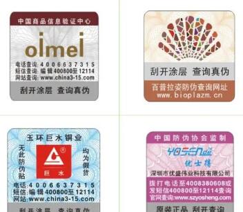 防偽商標學(xué)名(全國315產(chǎn)品防偽查詢中心)315防偽標識,是能粘貼、印刷、轉(zhuǎn)移在標的物表面,或標的物包裝上,或標的物附屬物(如商品掛牌、名片以及防偽證卡)上, 具有防偽作用的標識。防偽商標的防偽特征以及識別的方法是防偽商標的靈魂。