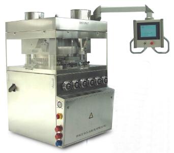 旋轉(zhuǎn)式壓片機壓片時轉(zhuǎn)盤的速度、物料的充填深度、壓片厚度可調(diào)節(jié)。機上的機械緩沖裝置可避免因過載而引起的機件損壞。機內(nèi)配有吸粉箱。通過吸嘴可吸取機器動轉(zhuǎn)時所產(chǎn)生的粉塵,避免粘結(jié)堵塞,并可回收原料重新使用。有些制藥壓片機在片劑壓片時出現(xiàn)毛邊和粉塵應(yīng)配套篩片機同時進行除塵( 兩次以上 ),必須要滿足GMP規(guī)范。