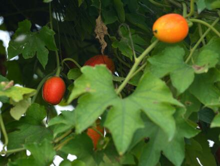 栝樓(學(xué)名:Trichosanthes kirilowii Maxim.)是葫蘆科,栝樓屬多年生攀緣草本,長(zhǎng)可達(dá)10米。根狀莖肥厚,圓柱狀,外皮黃色。莖多分枝,無(wú)毛;葉互生,近圓形或心形,雌雄異株;雄花數(shù)朵總狀花序,少有單生,花冠裂片倒卵形,雌花單生,子房卵形,果實(shí)近球形,熟時(shí)橙紅色,花果期7-11月。 栝樓有解熱止渴、利尿、鎮(zhèn)咳祛痰等作用。 種子含脂花肪油;果實(shí)含三萜皂苷、有機(jī)酸、樹脂、糖類、色素;根含蛋白質(zhì)、皂苷、酸類。