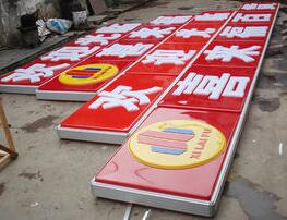 以吸塑為基材,將吸塑板材高溫加熱制至一定溫度后結(jié)合雕刻模具按設(shè)計需求擠壓成型的箱體式中空廣告載體。一般分為單面,雙面吸塑;一般用于戶外店鋪招牌門頭等,可做多種凹凸復(fù)雜造型,具有防水、發(fā)光、立體感強等特點。
