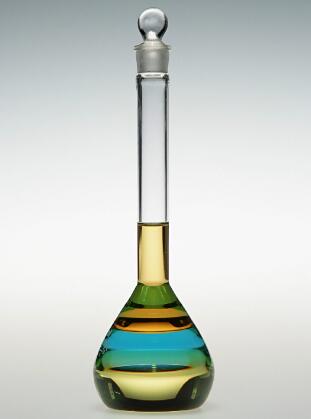 容量瓶,是一種細(xì)頸梨形平底的容量器,帶有磨口玻塞,頸上有標(biāo)線,表示在所指溫度下液體凹液面與容量瓶頸部的標(biāo)線相切時,溶液體積恰好與瓶上標(biāo)注的體積相等。容量瓶上標(biāo)有:溫度、容量、刻度線。