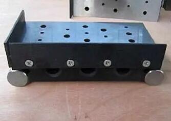 正弦尺是采用間接測(cè)量法測(cè)量精密測(cè)量樣板角度、圓錐體以及其他類似工具及工件的專用量具,需要和量塊,指示表等配合使用。正弦尺由主體和兩個(gè)圓柱等組成,兩端的圓柱中心線之間的距離L,有100及200毫米兩種規(guī)格。按工作臺(tái)面的寬窄B,正弦尺可分為寬面式與窄面式兩種。在寬面正弦尺的臺(tái)面上有一系列的螺紋孔,用來(lái)夾緊各種形狀的工件。