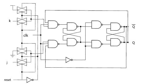 JK觸發(fā)器是數(shù)字電路觸發(fā)器中的一種基本電路單元。JK觸發(fā)器具有置0、置1、保持和翻轉(zhuǎn)功能。在各類集成觸發(fā)器中,JK觸發(fā)器的功能最為齊全。在實(shí)際應(yīng)用中,它不僅有很強(qiáng)的通用性,而且能靈活地轉(zhuǎn)換其他類型的觸發(fā)器。由JK觸發(fā)器可以構(gòu)成D觸發(fā)器和T觸發(fā)器。
