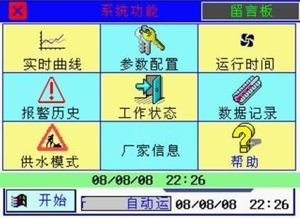 變頻恒壓供水控制器可以顯示運行曲線圖,運行狀況一目了然。可自定義廠商畫面,顯示公司名稱、聯(lián)話等信息。