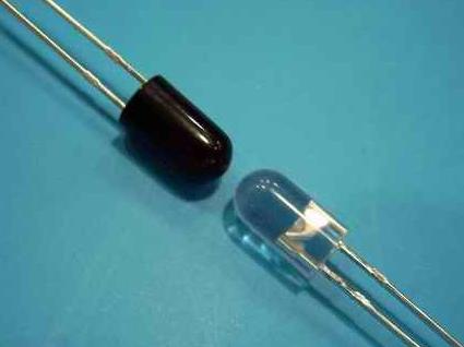紅外線發(fā)射器和接收器,一個(gè)是透明的,一個(gè)是黑色的,形狀近似。