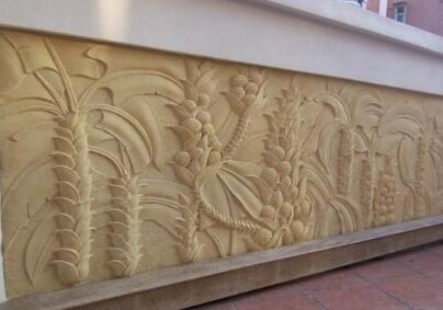 砂巖是一種沉積巖,由礦質(zhì)矽土顆粒凝聚結(jié)晶所構(gòu)成。是由石粒經(jīng)過水沖蝕沉淀于河床上,經(jīng)千百年的堆積變得堅(jiān)固而成。后因地球造山運(yùn)動(dòng),而形成今日的礦山。浮雕是雕塑與繪畫結(jié)合的產(chǎn)物,通過最小的空間占據(jù),來實(shí)現(xiàn)畫龍點(diǎn)睛,甚至是點(diǎn)石成金的藝術(shù)魅力。從裝飾風(fēng)格來說,砂巖浮雕屬暖色調(diào),既素雅溫馨,又不失華貴大氣,廣泛應(yīng)用于各種室內(nèi)外裝修。