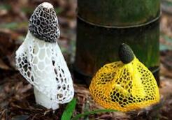 竹蓀(Dictyophora indusiata (Vent.ex Pers) Fisch)又名竹笙、竹參,常見(jiàn)并可供食用的有4種:長(zhǎng)裙竹蓀、短裙竹蓀、棘托竹蓀和紅托竹蓀,是寄生在枯竹根部的一種隱花菌類(lèi),形狀略似網(wǎng)狀干白蛇皮,它有深綠色的菌帽,雪白色的圓柱狀的菌柄,粉紅色的蛋形菌托,在菌柄頂端有一圍細(xì)致潔白的網(wǎng)狀裙從菌蓋向下鋪開(kāi),被人們稱(chēng)為"雪裙仙子"、"山珍之花"、"真菌之花"、"菌中皇后"。