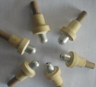 快速熱電偶主要由測溫偶頭與大紙管構(gòu)成。偶頭主要有正負(fù)偶絲焊接在補(bǔ)償導(dǎo)線上,補(bǔ)償導(dǎo)線穿嵌在支架上,支架外套有小紙管,偶絲以石英支撐和保護(hù)。最外裝有防渣帽,全部零組件集中裝入泥頭中并以耐火填充劑粘合成一整體,而不可拆卸,故為一次性使用。