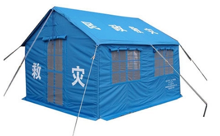 救災(zāi)專用 12m2單帳篷為長(zhǎng)方形雙坡面直墻建筑樣式。開門山墻上開三角窗一個(gè);開窗山墻開三角窗一個(gè),方形窗一個(gè),兩側(cè)墻各開方形窗戶兩個(gè)。側(cè)墻可支起成陽篷,整體帳篷通過拉繩拉起,用三角樁加固。符合民政部MZ/T 011.2-2010標(biāo)準(zhǔn)。
