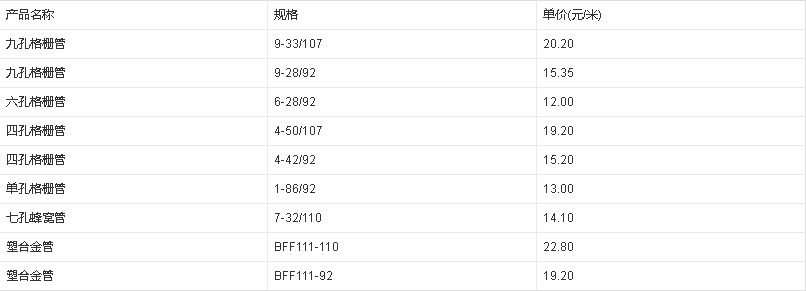 多孔格柵管之所以稱為多孔,是因為它有多個孔,多孔格柵管包括有單孔格柵管,四孔格柵管,五孔格柵管,六孔格柵管,九孔格柵管,七孔蜂窩管以及更多孔等各種的格柵管。杭州萬通塑膠有限公司生產(chǎn)的多孔格柵通信直埋管是一種新型光纜護套管,是集護套與子管為一體,一次擠壓成型 造型美觀采用PVC工程塑料制作抗壓強度高,重量輕,使用壽命長,內(nèi)壁光滑,磨擦力小,施工方便,可抵抗外力影響保護光、電纜功能的管子。有效空間大,方便于光纜的穿導、隔離及保護,產(chǎn)品具有提高工效、節(jié)約成本、安裝方便、穩(wěn)妥可靠等明顯優(yōu)點。廣泛適用于光纖通訊、有線電視、電力電纜多媒體傳輸?shù)然A(chǔ)工程,是一種新型實用的光電通訊設(shè)施的配套產(chǎn)品。