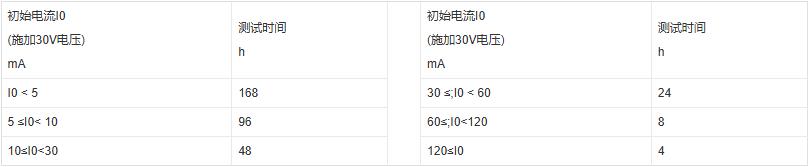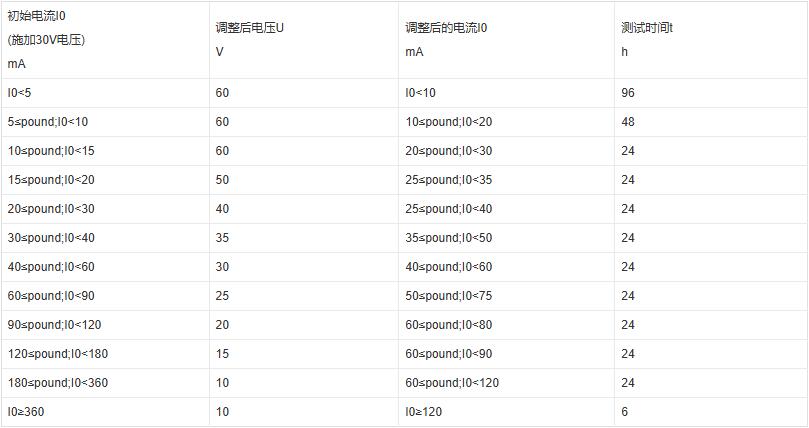 表1 初始電流與試驗(yàn)時(shí)間的關(guān)系 ,