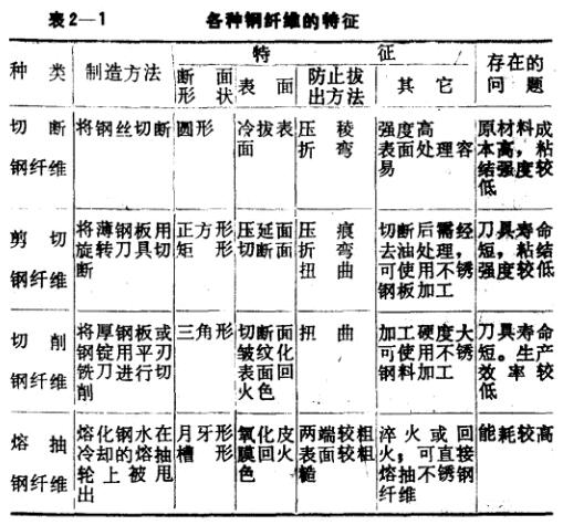 上述四種鋼纖維及其制造方法的特征比較見表2-1。各種鋼纖維的抗拉強(qiáng)度見表2-2。它們的價格和加工成本的大致比較見