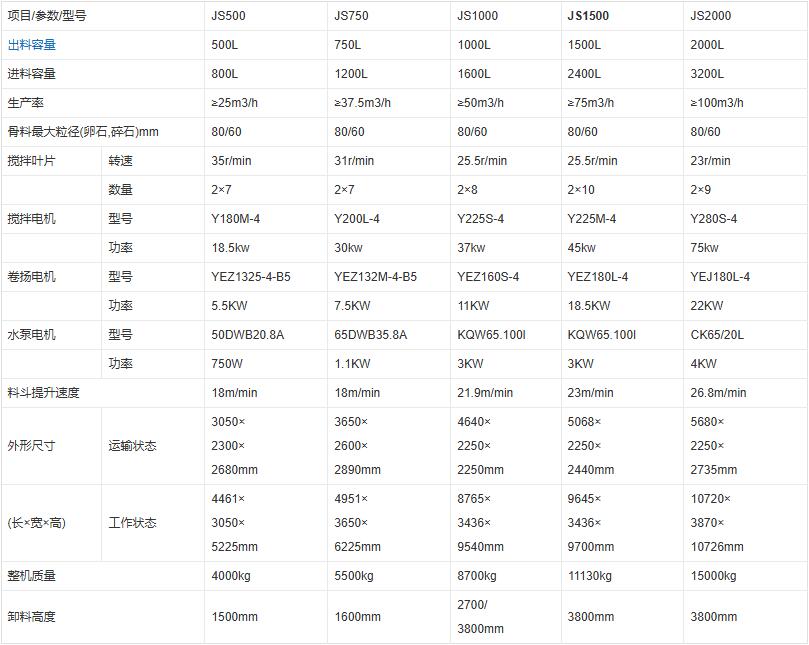 強(qiáng)制式單臥軸混凝土攪拌機(jī)技術(shù)參數(shù):