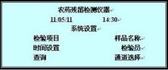 在系統(tǒng)設(shè)置界面按上下使光標(biāo)停留在"樣品名稱"上,按"確定"鍵選擇進(jìn)入樣品名稱界面,按左右鍵選擇通道,選定好通道按左右鍵選擇蔬菜水果名稱。
