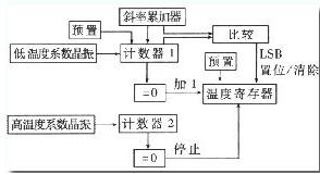 DS18B20的讀寫時序和測溫原理與DS1820相同,只是得到的溫度值的位數(shù)因分辨率不同而不同,且溫度轉換時的延時時間由2s 減為750ms。高溫度系數(shù)晶振 隨溫度變化其振蕩率明顯改變,所產生的信號作為計數(shù)器2的脈沖輸入。計數(shù)器1和溫度寄存器被預置在-55℃所對應的一個基數(shù)值。計數(shù)器1對 低溫度系數(shù)晶振產生的脈沖信號進行減法計數(shù),當計數(shù)器1的預置值減到0時,溫度寄存器的值將加1,計數(shù)器1的預置將重新被裝入,計數(shù)器1重 新開始對低溫度系數(shù)晶振產生的脈沖信號進行計數(shù),如此循環(huán)直到計數(shù)器2計數(shù)到0時,停止溫度寄存器值的累加,此時溫度寄存器中的數(shù)值即 為所測溫度。圖3中的斜率累加器用于補償和修正測溫過程中的非線性,其輸出用于修正計數(shù)器1的預置值。