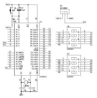因此,圖4電路只適應于單一溫度傳感器測溫情況下使用,不適宜采用電池供電系統(tǒng)中。并 且工作電源VCC必須保證在5V,當電源電壓下降時,寄生電源能夠汲取的能量也降低,會使溫度誤差變大。