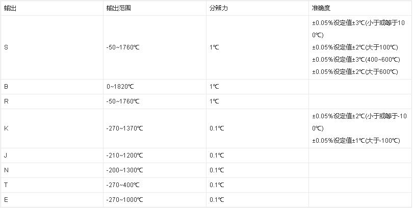 8種熱電偶(S、B、R 、K、J、N、 T、E)測量和模擬輸出