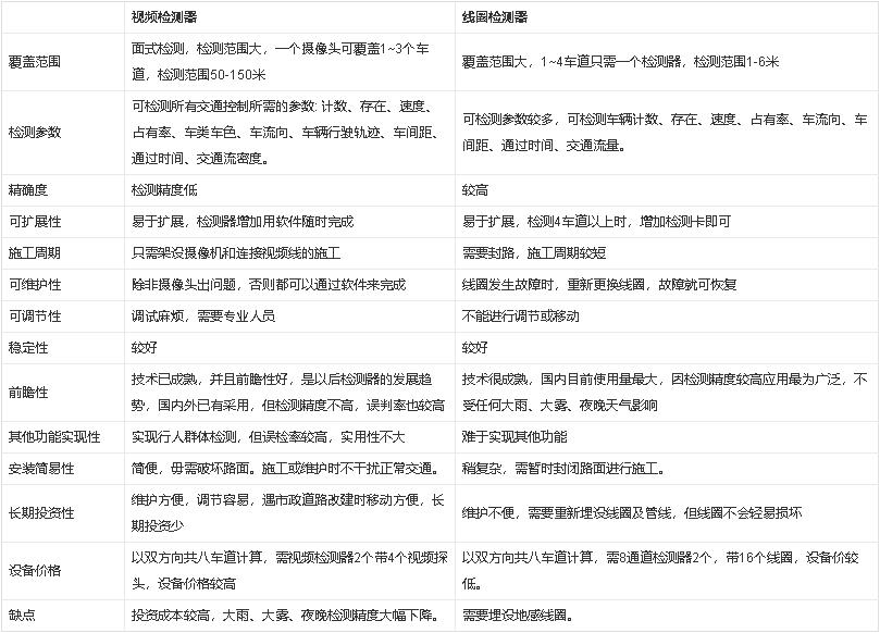 視頻檢測(cè)器或許是最佳選擇,視頻檢測(cè)器是采用虛擬檢測(cè)區(qū)域用圖像處理方式分析交通信息,隨著圖像處理技術(shù)的發(fā)展視頻檢測(cè)成為了一種成熟的技術(shù),逐步達(dá)到了類似人眼的"所見即所得"的效果,但檢測(cè)精度受天氣影響現(xiàn)還需要克服。隨著智能交通的發(fā)展,交通信息檢測(cè)器的使用將越來越多,使用線圈檢測(cè)器則需要封路、施工,但檢測(cè)精度是所有檢測(cè)器中最高的。視頻檢測(cè)器雖檢測(cè)精度容易受天氣影響,所具有的大區(qū)域檢測(cè)、安裝方便、后期維護(hù)量少必將取代線圈檢測(cè)器成為交通流檢測(cè)器的主流。