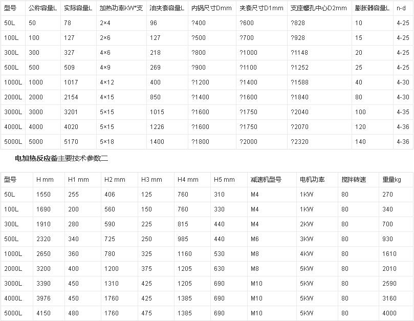 電加熱反應(yīng)釜主要技術(shù)參數(shù)一