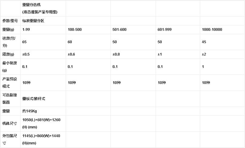 不同系列的重量分選機具有不同的型號和參數(shù),就目前使用較為廣泛的MXTW系列重量分選機,精度可達±0.1g,稱重范圍也比較廣泛的:0.01g~500kg,隨著科技不斷發(fā)展,加之國家對高新技術的扶持,未來的重量分選機的發(fā)展也會越來越迅猛,但精度要達到微克級別,尚需時日。而中國的高科技產品要走向國外,更需要不斷上下求索。