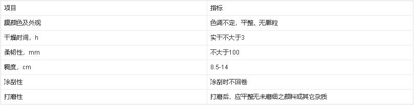 3、配套要求:可涂于過氯乙烯底漆、醇酸底漆或環(huán)氧酯底漆上面,而膩子層上面可噴涂各種過氯乙烯面漆,自干丙烯酸面漆,醇酸面漆等。
