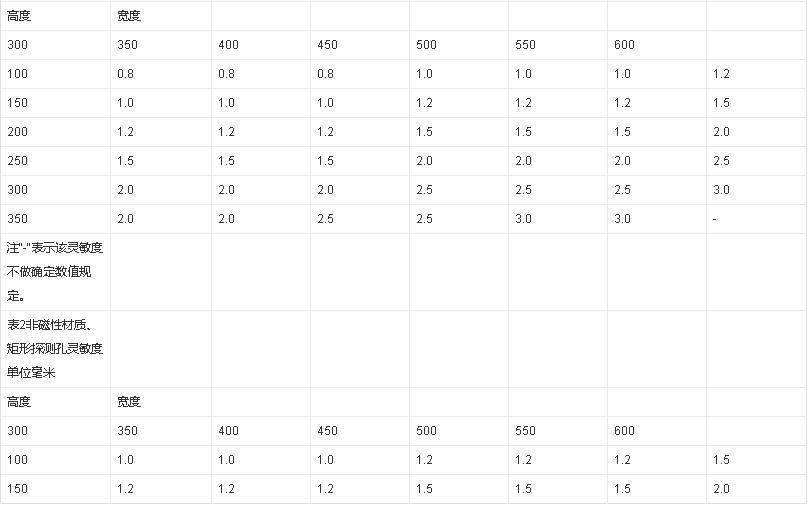 探測(cè)靈敏度:Fe ≥φ0.5mm SUS ≥φ1.0mm(輸送帶中心)