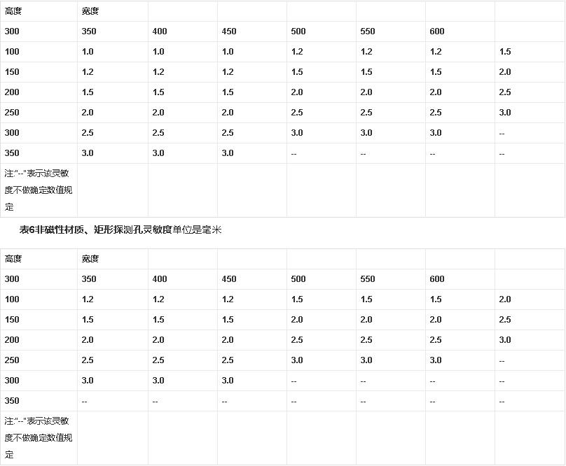 地下金屬探測(cè)器采用聲音報(bào)警及儀表顯示,探測(cè)深度跟被探金屬的面積、形狀、重量都有很大的關(guān)系,一般來說,面積越大,數(shù)量越多,相應(yīng)的探測(cè)深度也越大;反之,面積越小,數(shù)量越少,相應(yīng)的深度就越小。下表所列最大探測(cè)深度,是按產(chǎn)品的企業(yè)標(biāo)準(zhǔn)用一塊60公分*60公分*0.5公分的鋁板埋入干燥泥土之中實(shí)測(cè)的結(jié)果。