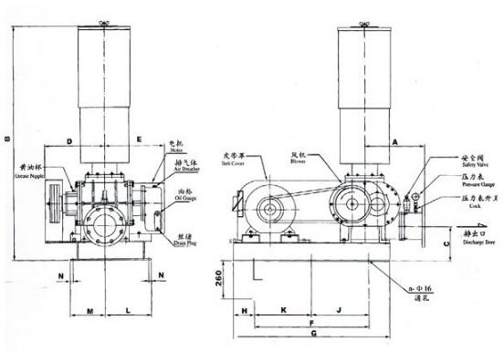 2、為了保證鼓風(fēng)機(jī)安全運(yùn)行,不允許承載管道、閥門(mén)、框架等外加負(fù)荷。