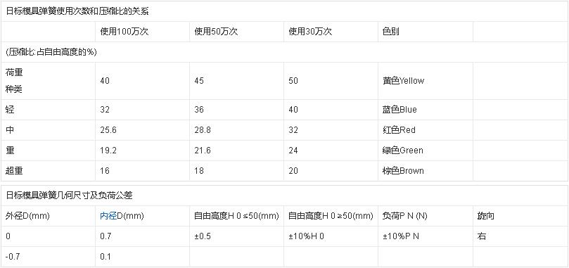 美標(biāo)模具彈簧顏色負(fù)重對(duì)照表