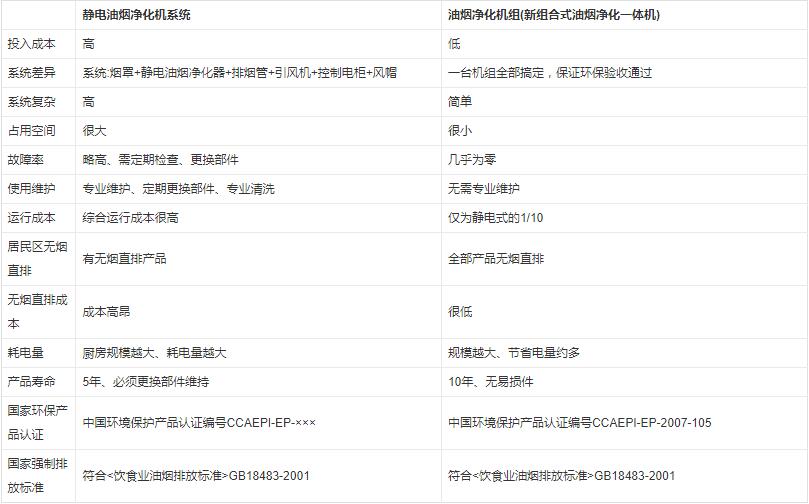 油煙凈化方案對比