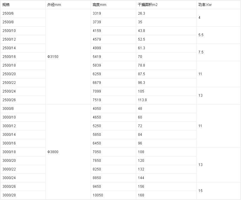 2、動力消耗低、噪音小。由于干燥過程中料層很薄,主軸轉(zhuǎn)速低,物料傳送系統(tǒng)所需的功率小,電耗很少,其全套干燥裝置動力消耗僅是對流方式傳熱裝置動力消耗的1/5~1/7,且噪音很小。
