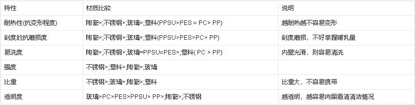 優(yōu)點:材質(zhì)安全不含雙酚A,透明度高,耐高溫,內(nèi)壁光滑,不藏奶垢,易清洗。