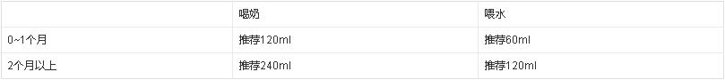 奶瓶分為150ml、180ml、260ml三種容量,可根據(jù)寶寶一次的食量挑選。一般說來,未滿1個月的寶寶的哺乳量1次約100~120ml。滿1個月以上的寶寶的哺乳量1次應(yīng)為120~200ml,一天宜控制在800~1000ml左右。也有些寶寶喝的較少。
