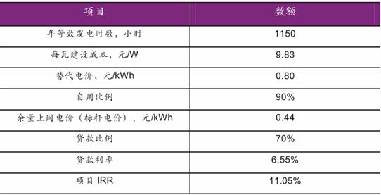 根據(jù)最新補(bǔ)貼政策,我國(guó)對(duì)分布式光伏[5]實(shí)行全電量補(bǔ)貼,補(bǔ)貼標(biāo)準(zhǔn)為0.42元//kW比而對(duì)于余量上網(wǎng)部分,由當(dāng)?shù)仉娋W(wǎng)公司按照當(dāng)?shù)厝贾\機(jī)組上網(wǎng)電價(jià)收購(gòu)。我國(guó)分布式光伏電站主要建在川類資源區(qū)。據(jù)此測(cè)算,分布式光伏電站的內(nèi)涵回報(bào)率在11%左右,收益率也較高。