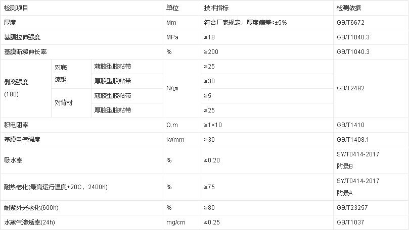 3、聚乙烯雙面膠型防腐膠帶 :這種膠帶兩面都有復(fù)合型丁基橡膠,一般只是作為防腐帶(內(nèi)帶)使用,在南亞次大陸用途比較廣,國內(nèi)很少用到,主要是很少設(shè)計(jì)到,國內(nèi)的標(biāo)準(zhǔn)還不完善。