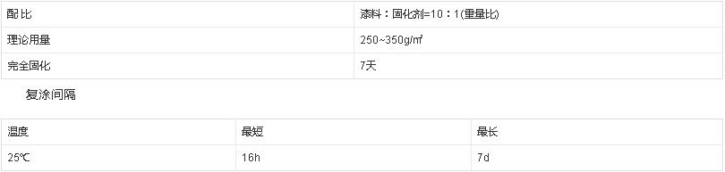 注意:視氣溫高低,可適當(dāng)縮短或延長(zhǎng)復(fù)涂間隔,如超過最長(zhǎng)復(fù)涂間隔可用砂紙對(duì)前道漆膜打毛處理。