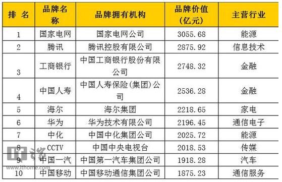 2016年6月22日消息,今天,世界品牌大會在北京舉行,世界品牌實驗室(World Brand Lab)在會上發(fā)布了2016年(第十三屆)《中國500最具價值品牌》分析報告。報告顯示,國家電網(wǎng)、騰訊和工商銀行分別以3055.68億元、2875.92億元和2748.32億元的品牌價值位列品牌榜前三甲。此外,排在榜單前十位的品牌還包括中國人壽、海爾、華為、中化、CCTV、中國一汽和中國移動。