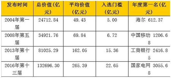 中國500最具價值品牌13年演變(2004-2016)