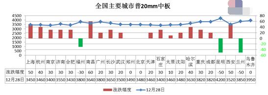 國內中厚板現(xiàn)貨價格小幅上漲,上海、杭州、廣州、武漢、津冀、沈陽、西安等17個城市價格上漲10—60元/噸,福州、昆明、蘭州市場價格下跌30—50元/噸。據(jù)統(tǒng)計,全國23個主要市場普20mm中板價格報3619元/噸,較上一交易日價格上漲17元/噸。