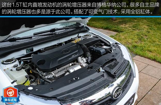 這臺1.5T發(fā)動機早已服役于旗下的速銳、G6、思銳車型上,是比亞迪自主研發(fā)的,內(nèi)部代號為BYD476ZQA,渦輪增壓器采購于博格華納公司,為了能夠耐受汽油發(fā)動機極高的排氣溫度,這顆代號為KP39的渦輪增壓器配有水冷式軸承座,可為發(fā)動機高負(fù)荷運轉(zhuǎn)時提供更加穩(wěn)定的工作狀態(tài)。該發(fā)動機整體賬面數(shù)據(jù)非常搶眼,最大功率為113kW(154馬力)/5200rpm,最大扭矩可達(dá)240Nm/1750-3500rpm,這種表現(xiàn)已經(jīng)超過諸如長城C50、榮威350、中華H530的1.5T的數(shù)據(jù)了。