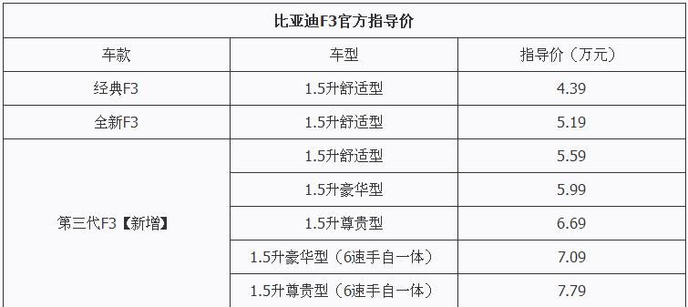 F3是比亞迪旗下最為暢銷(xiāo)的轎車(chē)產(chǎn)品,新老車(chē)型累計(jì)銷(xiāo)量已達(dá)到150萬(wàn)輛。網(wǎng)通社從比亞迪官方獲悉,10月26日,第三代F3正式上市,全系共推出5款車(chē)型,售價(jià)區(qū)間為5.59萬(wàn)-7.79萬(wàn)元。此外經(jīng)典F3、全新F3也將各保留一款車(chē)型,分別售4.39和5.19萬(wàn)元,三代同堂銷(xiāo)售并繼續(xù)保持親民的售價(jià)體系。