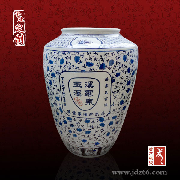 我們唐龍生產(chǎn)不同風格款式的青花瓷酒壇,有帶鎖扣的青花瓷酒壇,帶龍頭的青花瓷酒壇,升值青花瓷酒壇的重量、大小、花色都可定制,10斤青花瓷酒壇、20斤青花瓷酒壇、50斤青花瓷酒壇、100斤、500斤、1000斤2000斤等等都可定做,還可在青花瓷酒壇上加字加logo等。滿足客戶對酒壇的任何需求。
