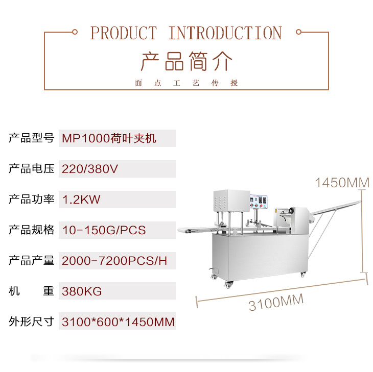1、旭眾牌荷葉夾機采用連續(xù)壓面工藝,仿人工卷面,不傷面筋,使面皮光澤、品質(zhì)更加穩(wěn)定,口感更好。
