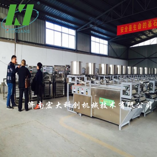 宏大科創(chuàng)豆腐皮機(jī)器煮漿采用蒸汽加熱方式,避免豆?jié){出現(xiàn)焦糊味,保持大豆原有的清香味。小型豆腐皮機(jī)廠家直銷,質(zhì)量有保障,機(jī)器產(chǎn)量相對(duì)比較小,適合小型的作坊、批發(fā)商、學(xué)校、部隊(duì)等豆制品加工設(shè)備使用
