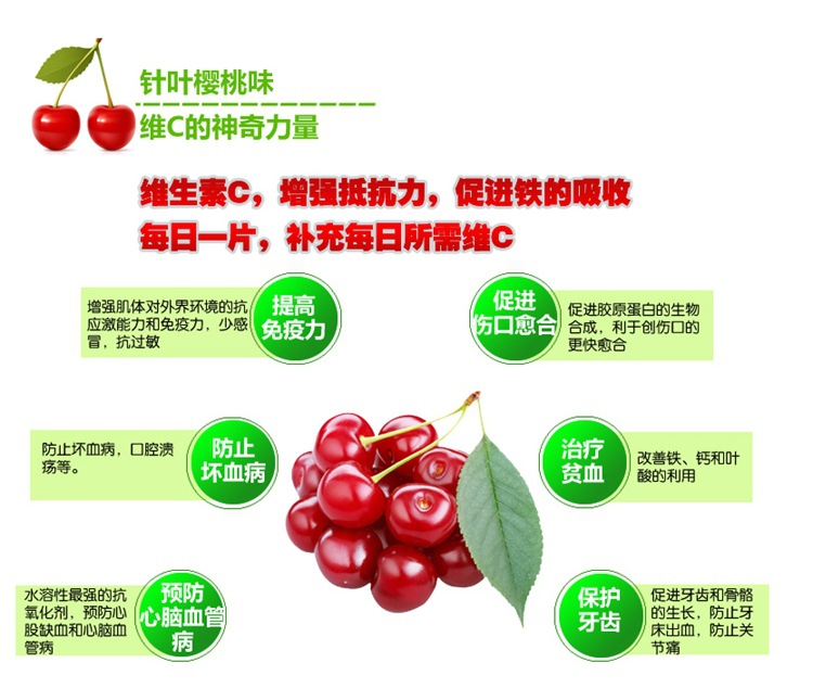 針葉櫻桃(acerola cherry)原產(chǎn)于南美洲西印度群島加勒比海地區(qū),又稱西印度櫻桃(west indian cherry),以富含維生素 c而聞名于世,是目前種植的植物中維生素 c含量最高的,是世界公認(rèn)的天然vc之王和生命之果。針葉櫻桃還含有維生素 a、b1、b2、e、鐵、鈣、磷、煙堿 酸 、蛋白質(zhì)等多種營(yíng)養(yǎng)物質(zhì)且富含類黃酮 等植物營(yíng)養(yǎng)素 。正由于類黃酮 的存在,能防止維生素 c被氧化而受到破壞,從而增強(qiáng)了vc的吸收和利用效果,對(duì)人體的作用在很多方面均大大優(yōu)于人工合成維生素 c。天然維生素 c能夠防感冒,防壞血病,改善和增強(qiáng)人體抵抗能力,vc又是一種很好的抗氧化劑 ,可以清除人體活動(dòng)中產(chǎn)生的自由基。