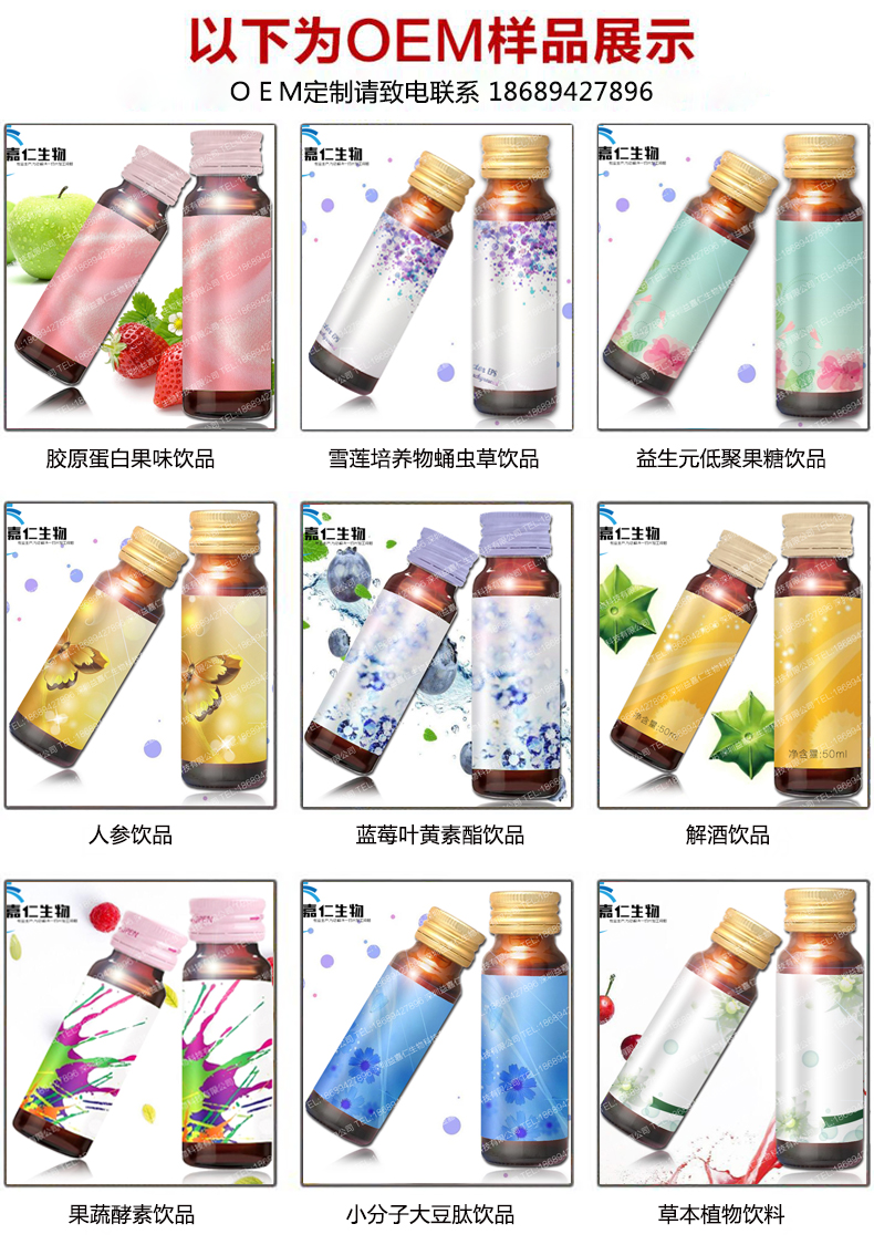紅藜麥 抗糖膠原蛋白肽果汁飲品加工,膠原蛋白玫瑰飲料oem貼牌灌裝,雪蓮燕窩膠原蛋白飲品代加工,膠原蛋白小分子肽飲品貼牌代工,人參低聚果糖低聚肽飲品加工,玉米肽解酒口服液加工,藍莓葉黃素 酯飲品加工,新資源健康美容飲品代加工--從策劃、設計、研發(fā)、采購、生產(chǎn)、出貨、品牌營銷每一個環(huán)節(jié)均由本公司一站式精心打造!深圳益嘉仁生物采用一千級無菌車間,產(chǎn)品生產(chǎn)環(huán)境達制藥標準,同時避免出現(xiàn)水中的重金屬、細菌含量超標情況,所有生產(chǎn)用水均為自主生產(chǎn)的純凈水,從根源確保產(chǎn)品的安 全!