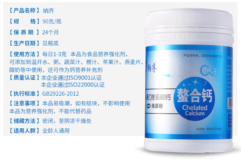 納齊 納米氨基酸 螯合鈣 天門冬氨酸 鈣 90克/瓶 招商代理